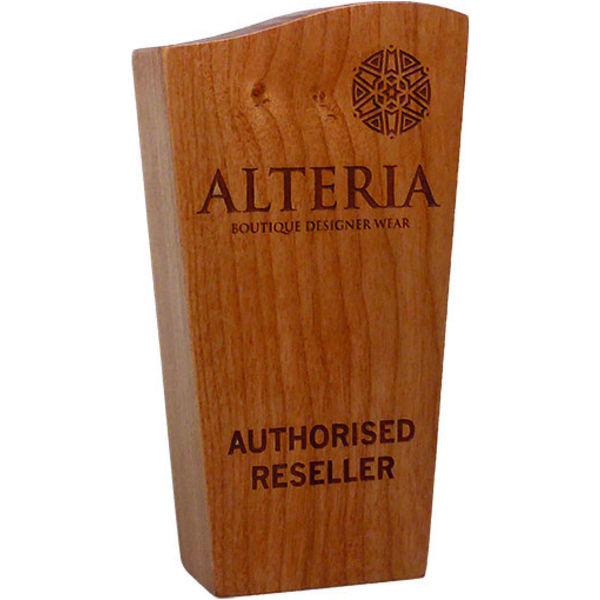 Real wood block awards in any of 5 standard shapes. 28mm thick real wood in oak, cherry or walnut available at an additional cost. Can be supplied printed OR engraved to one side only. No minimum order quantity.