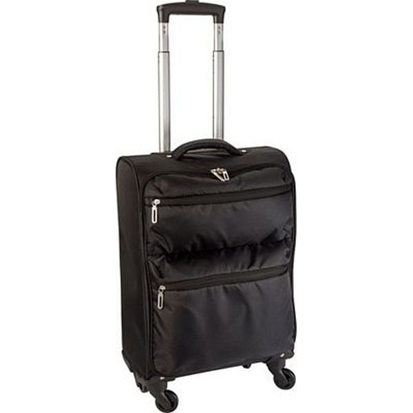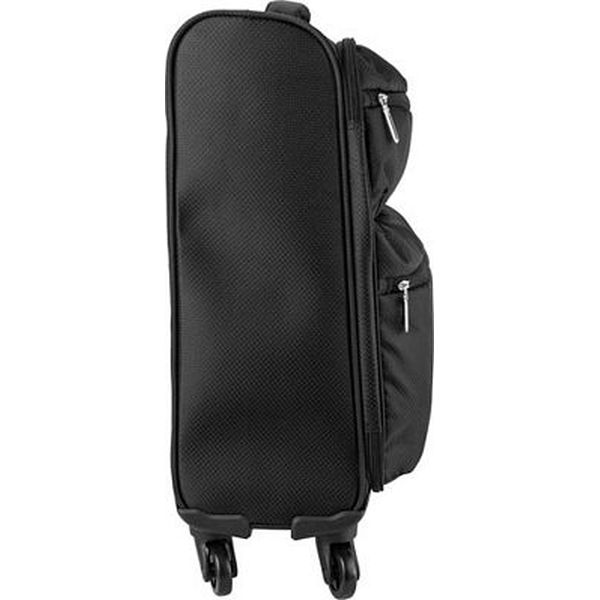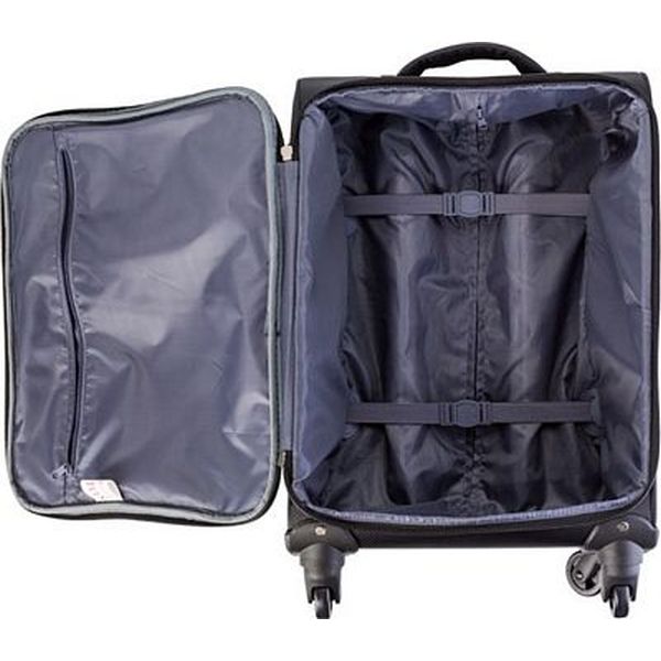 420 Jacquard light weight trolley with 4 wheels, an aluminium extendable handle, two front soft padded zipped pockets .