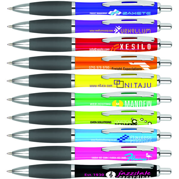 Attractive push-button retractable ballpen with chrome fitments and a comfortable rubber grip. Colour range includes ten popular colours. Black ink refill.