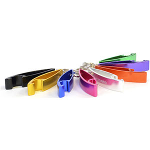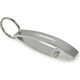Durable metal bottle opener, includes a silver split ring attachment. The shape is designed to provide a good branding area whilst also ensuring bottle lids are removed with ease.