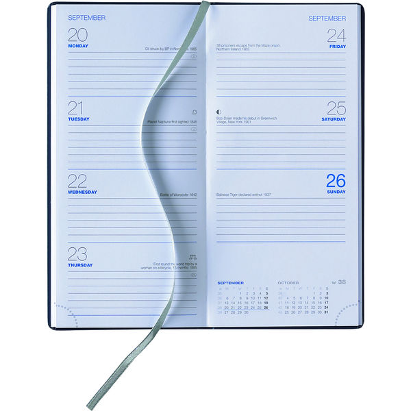 The Tucson pocket diary is soft to touch yet practical with a deep embossed date design.Tucson diaries are available in a large selection of formats. Features a silver ribbon marker with a printed year date and includes a full colour UK World map section and a London Underground Map. This product features ecological paper sourced from sustainable forests.