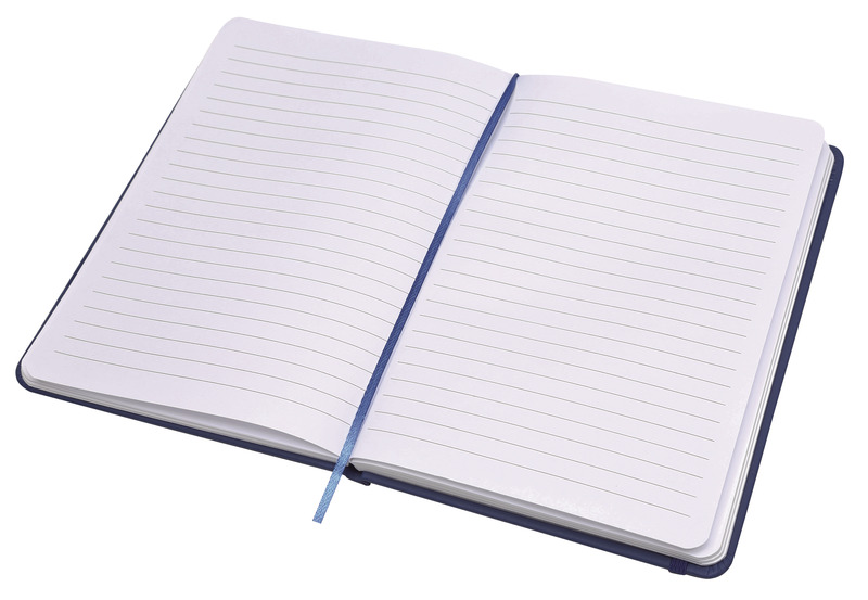 100 page lined paper A5 note pad, matching elastic closure and page marker. Soft touch PU cover.