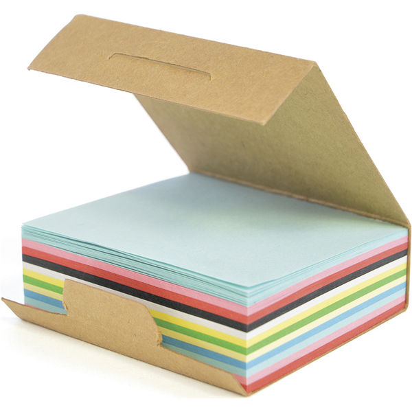 Recycled 240 page memo block. Natural card cover. Coloured notes. Black PU handles.