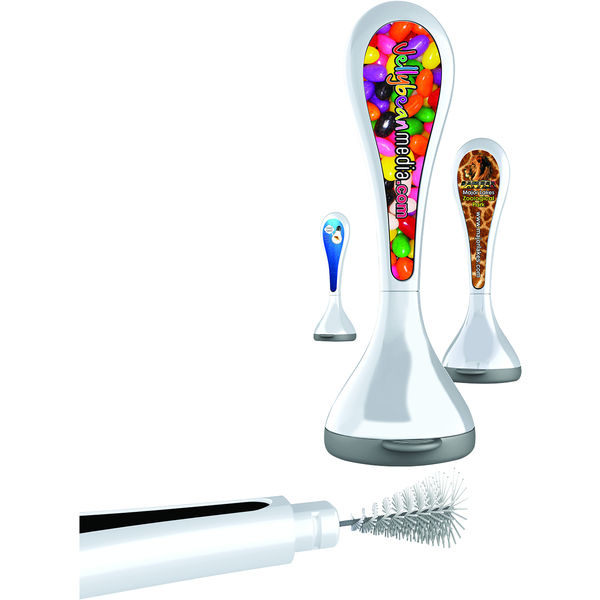 Keyboard Cleaner with Microfibre Screen Cleaner. The patent pending Buzz Brush reaches in-between and under the keys, removing lint and dirt. The Buzz Brush microfibre cleaning pad also removes fingerprints, smudges and dust from your LCD electronic devices. Includes full colour digital print to both sides of the product.