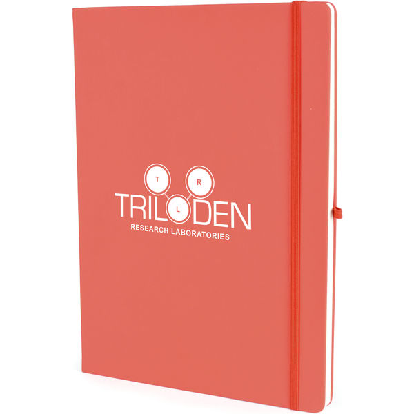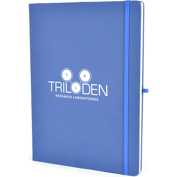 A4 PU soft finish 80 page lined notepad with book mark, pocket at back for securing business cards and loose notes, pen loop and an elastic closure to keep the contents securely in place. Can be printed or blind embossed.