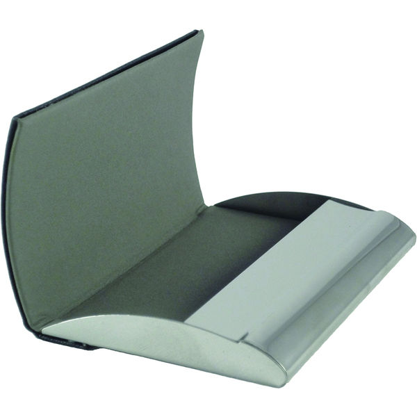 High quality business card holder with black PU cover and suedette lining. Supplied with a presentation box.