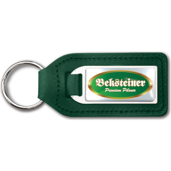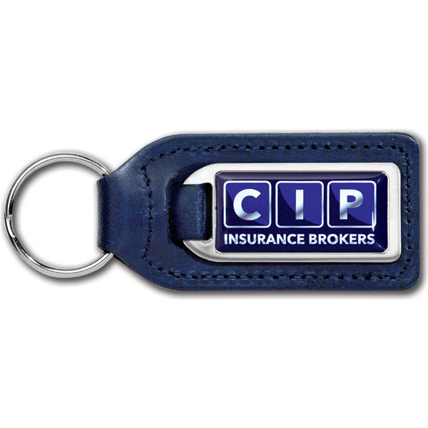 High quality medallion keyfob in genuine leather with a heavy gauge chrome plated cast medallion and process printed Polycrown emblem.