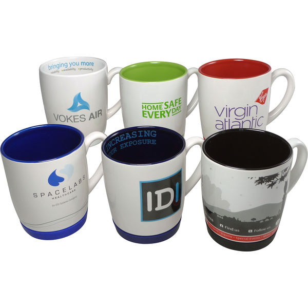 Ceramic mug in White with non-slip silicone base. Great for maximising brand colours. Capacity 330ml. Base available in 5 colours. Additional cost for coloured inner if required - please enquire.