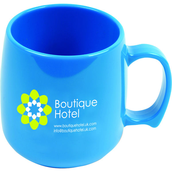 Long lasting, hardwearing and virtually indestructible British made plastic mug. The Classic Mug has a popular rounded design. Our mugs are made from high quality, food safe plastics and have a 300ml capacity. We offer fantastic branding areas to each of our mugs, and they're all available in a striking colour palette to suit your brand.