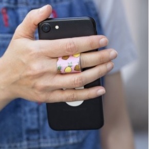 Silicone mobile phone loop. 4mm thick with a black or white base. Printed in full colour.