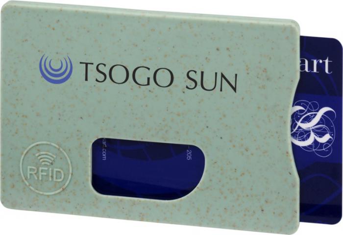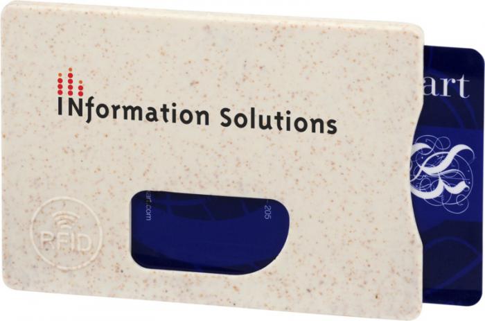 Straw RFID card holder. A more sustainable choice! The RFID credit card protector provides the perfect protection against payment fraud and identity theft because it has an electromagnetic shield. The RFID Card holder is also slim, so it can be kept in a wallet, purse or pocket. It also offers a large decoration area. Made of 50% wheat straw. Wheat straw, PP Plastic.