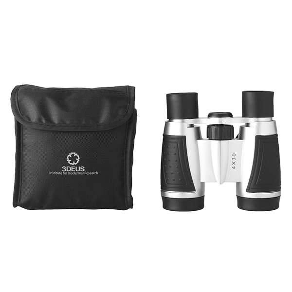 Binoculars with rubber grips, soft eyepieces for comfort and a neck cord. Enables you to view 4 times closer. 217m field of view at 1000m. Includes a black nylon pouch. Plastic