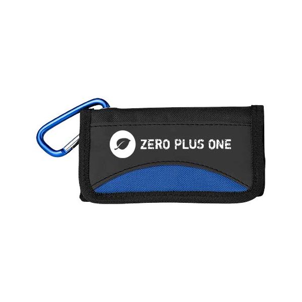 19-piece tool set. Small and foldable 19-piece tool set with a karabiner for easy storage. The set contains: 4x socket (7-8-9-10mm), 1x socket screwdriver, 10x screwdriver bits, 1x extension bar and 3x hex key sets (3-4-5mm). 600D and PU pouch.