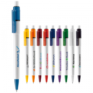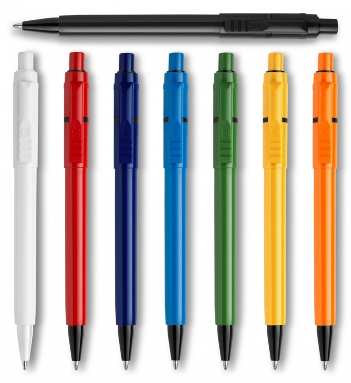 Hugely popular push button plastic ballpen made in Italy by Stilolinea. Choice of Solid colours or white body with a choice of coloured trims. Blue ink refill as standard. Black ink is also available as a special order.