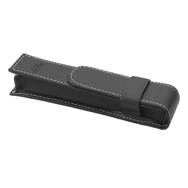 Ballpoint pen. Exclusive design leather wrapped barrel ballpoint pen with imitation leather pen pouch in Balmain gift box (size: 15 x 3.5 x 3 cm). Metal and imitation leather.