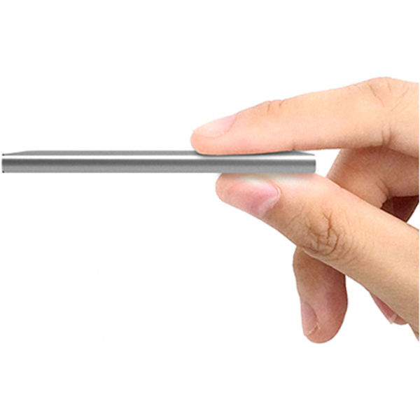 Ultra slim (5 mm) aluminium powerbank with top quality battery and built-in micro USB cable / connector. Elegant, lightweight and with an excellent print / branding area this is a great emergency power source for your smart phone. Includes iPhone 5 / 6 connector. 2200 mAh battery