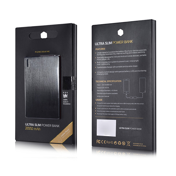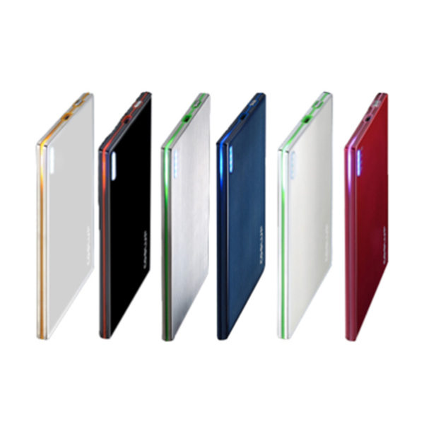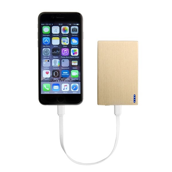 Slim credit card sized powerbank that slips into your wallet. High quality li-polymer battery with 2000mAH capacity for charging phones and MP3 devices. Input USB 5VDC/0.8A, output micro USB 5V DC/1A. Available in stainless steel (stainless steel version has LED charge indicator) or aluminium. Ideal for laser engraving with a large branding area. Supplied in a PU protective pouch.