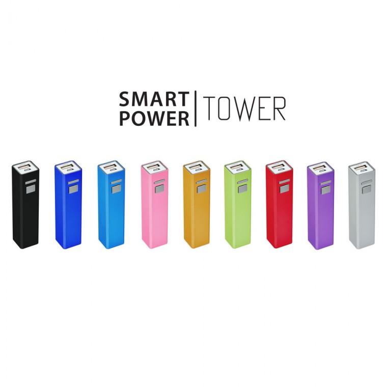 Executive style powerbank with a function button, working indicator light and built in intelligent over charge and discharge protection. The Smart Power Tower is suitable for charging mobile phones, MP3/4 players, digital cameras and portable gaming devices. The Towerâs aluminium finish is an ideal surface for laser engraving but spot colour printing options are also available. Battery Capacity: 3.7V/2200mAh/8.1WH. Packed in a cardboard window box as standard but can also be supplied in plastic presentation gift box at an extra charge - please enquire.