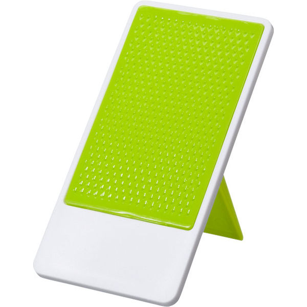 Desktop sticky pad mobile phone holder with folding stand. Plastic