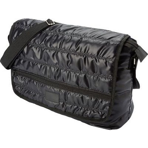 Polyester messenger bag (240D) with PU coating and a quilted flap, zipped main compartment, one zipped front pocket and one adjustable nylon carry strap.