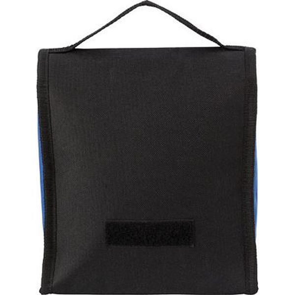 Polyester 600D foldable cooler lunch bag with one large compartment. To be closed with a Velcro closing.