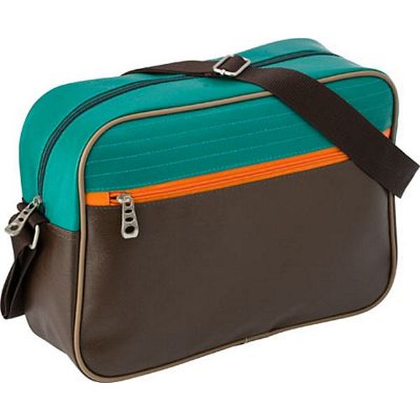 PU Retro style flight bag with a front zipped compartment, zipped interior pocket with pen slots and supplied with a adjustable shoulder strap.