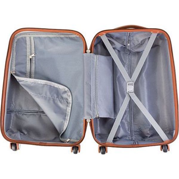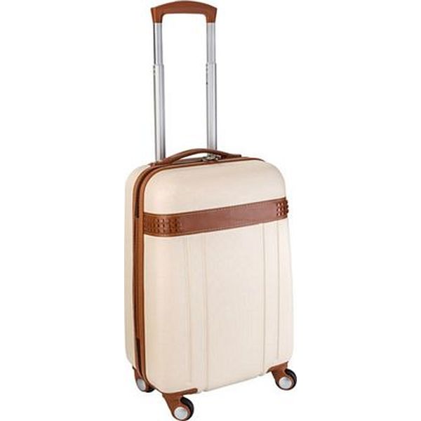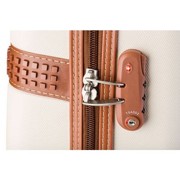 ABS plastic trolley with four wheels and extendable handle, a matching carry handle and a zipped closing. The pullers of the zipper are to be placed in the TSA002 lock with digits (required for all customers travelling to the USA) .