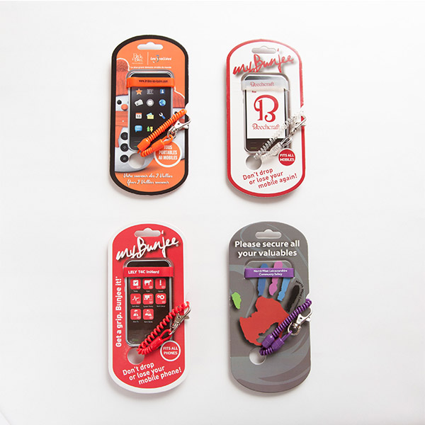 Don't drop or lose your mobile phone again! Unique mobile phone accessory adapts to fit any mobile phone, keeping you phone safe, secure, protected and available at all times. Available in 5 different styles and 4 different colours. Orders of 1000 or more can be pantone matched.