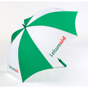 75cm rib length lightweight stormproof golf umbrella with fibreglass 14mm diameter shaft and 3.5mm diameter ribs. Choice of 10 different pole and pistol grip handle colours and 30 different panel colours. Polyester canopy and tie wrap. Soft Feel printing is also available.