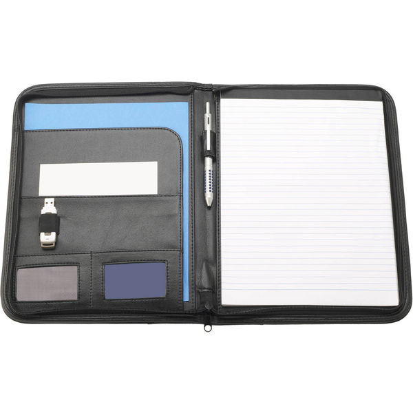 A4 zipped folder in leather look PU with wavy contrasting spine material. A4 lined pad included.