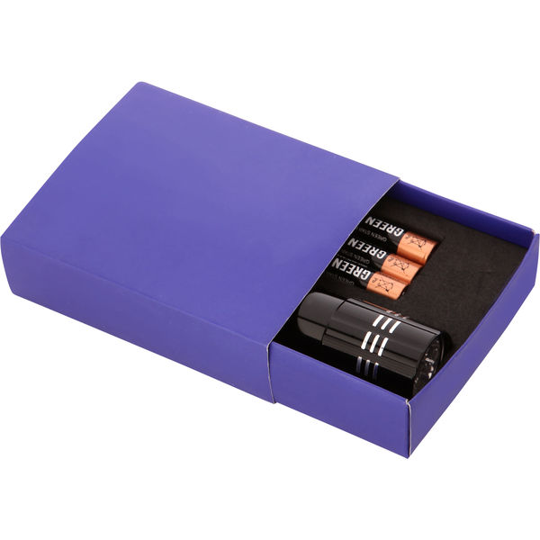 9 LED aluminium torch. Complete with 3 x AAA batteries and strap in a presentation box.