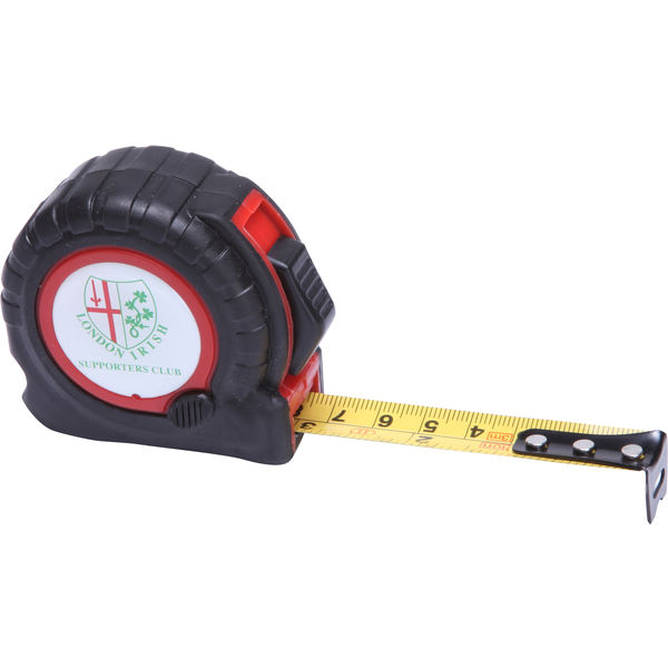 Professional quality tape measure with an ergonomic grip and shock proof case. Printed full colour on a domed label.