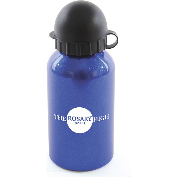 350ml aluminium sports bottle. Excellent size for kids. Features include black domed lid with screw top drink spout. Don't worry about losing the lid as it's always attached to the bottle. Conforms to articles in contact with food testing