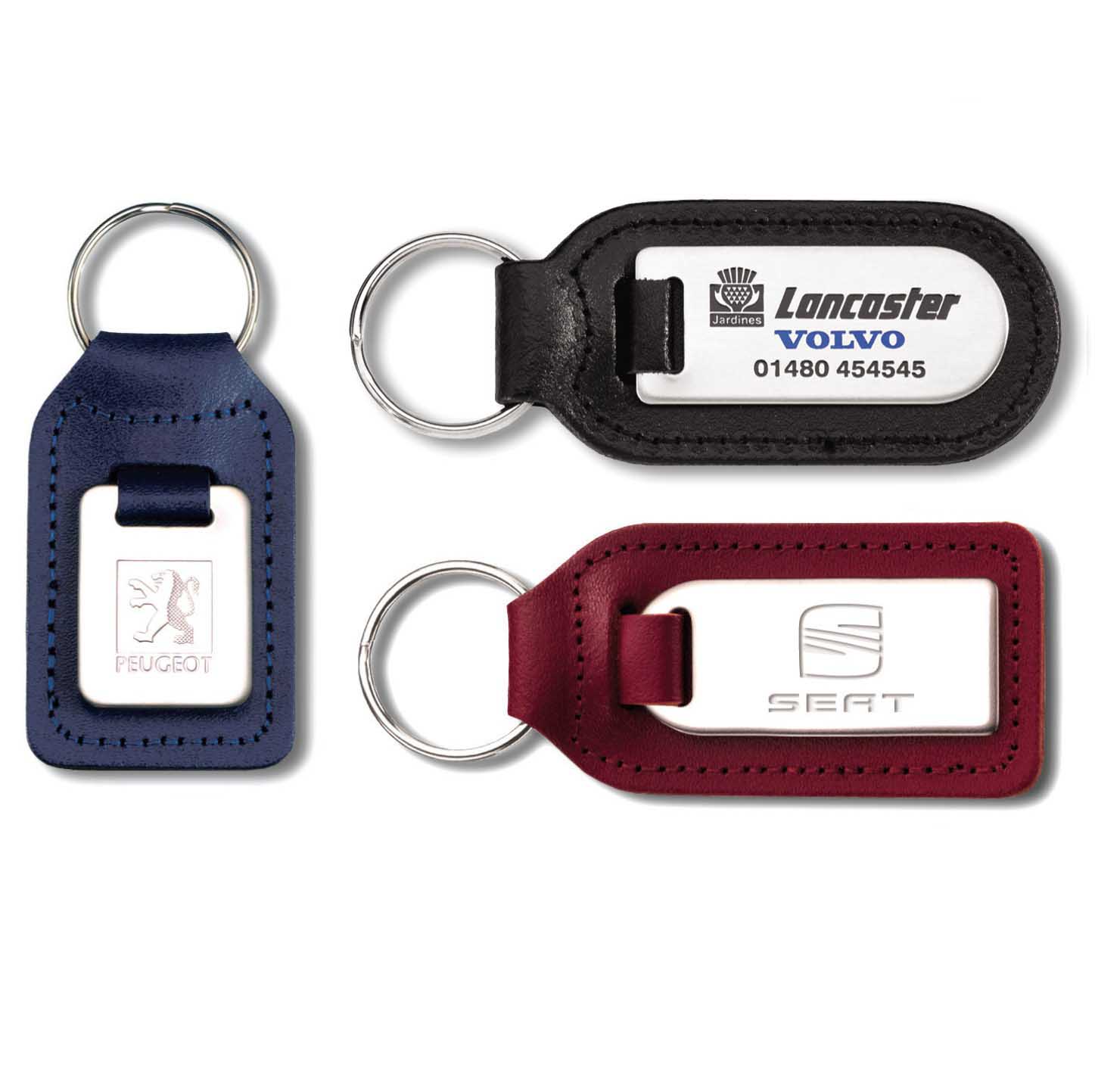 Genuine leather keyfob with a highly polished stainless steel medallion and standard 30mm split ring fitting. Medallion die stamped and colour filled in up to four spot colours. The reverse of the keyfob can be blind embossed or foiled in one colour at an extra charge if required (please enquire).