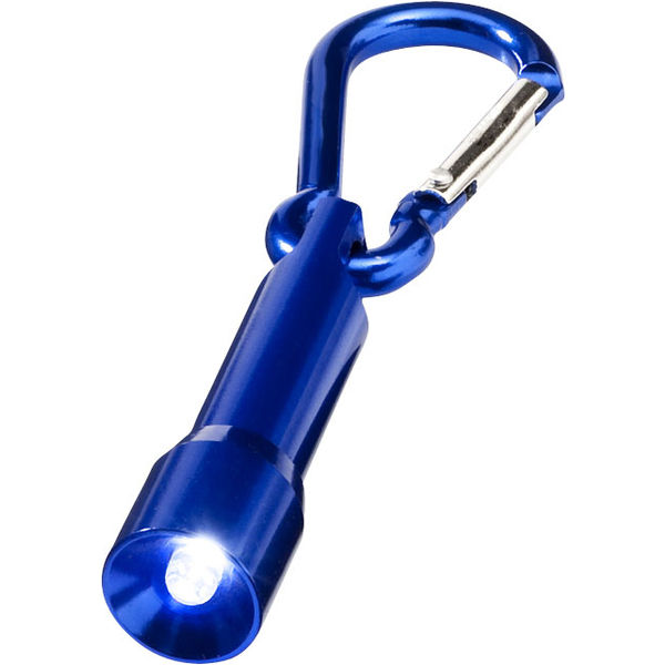 White single LED key light with twist on/off power. Batteries included. Not intended for climbing. Aluminium