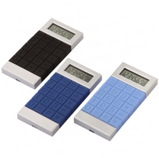 Modern stylish calculator with all rubber wrap around keys. Neat and compact an ideal giveaway. 1 x LR1130 battery included.