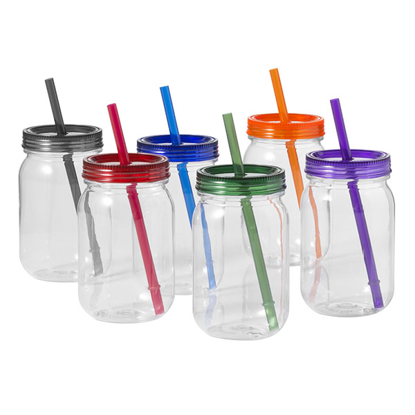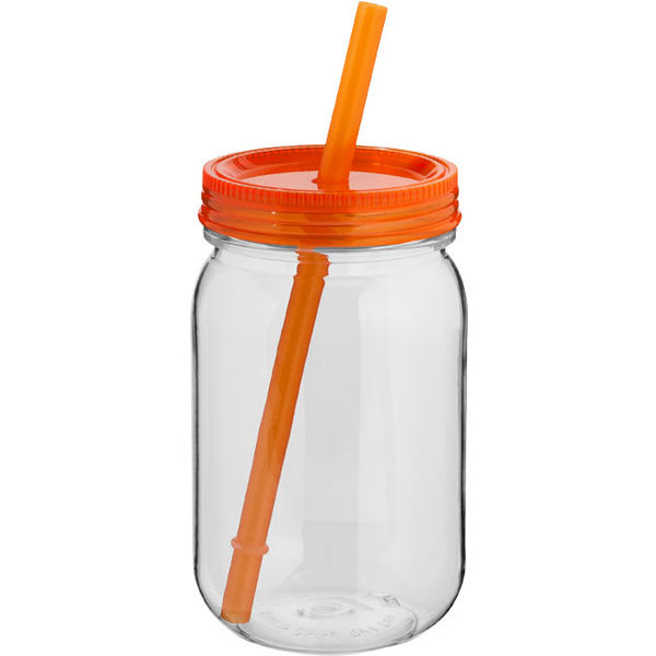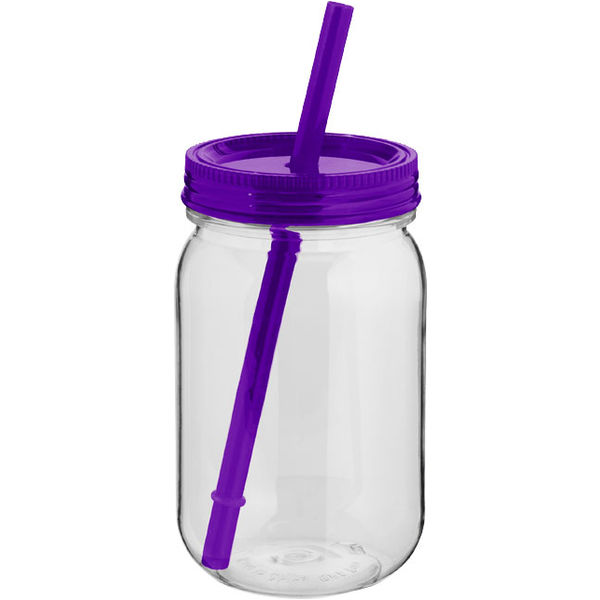 Single wall mason tumbler with colour twist on lid and matching straw. Volume capacity is 750 ml. No Handle.