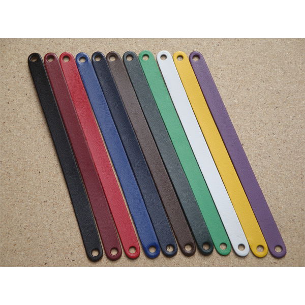 Gazelle Brand Bonded leather loop key fobs. Available in choice of eleven colours. Gold or silver foil blocked. Fitted with 25mm split ring.