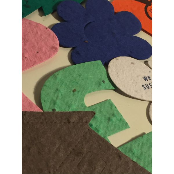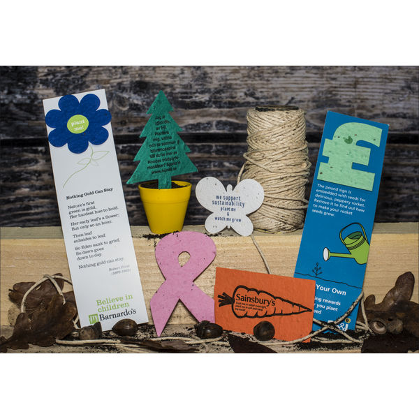 Seeded paper is a biodegradable eco-paper made from post-consumer materials and embedded with seeds. When you plant the paper in a pot of soil or outside in the garden, the seeds germinate and the paper composts away. Printed on 100% recycled board with soy based inks and organic pigments It can be presented in a variety of ways. Not only do we have a vast array of seed varieties but the paper is fully customisable with printing and shape. However, it is recommended that smaller seeds are used, making the seed paper smoother and more suitable for print.