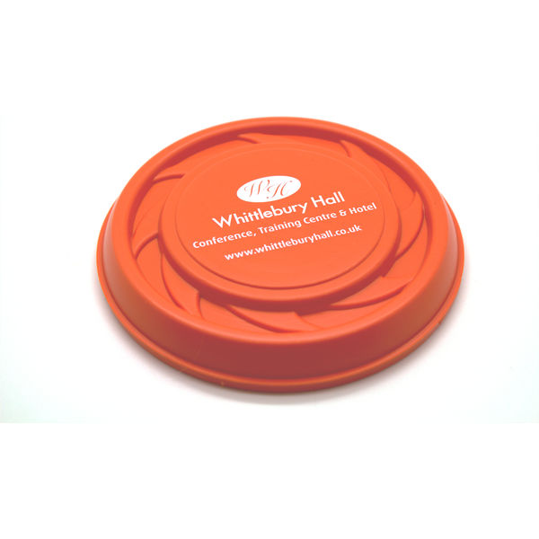 Mini Flying Disc, made in the UK from recycled plastic. Lightweight design and flies expetionally well. Digitally printed up to full colour. Available in 8 standard colours, or custom coloured (Pantone matched) at additional cost.