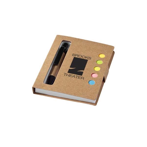 Reveal sticky notes book. 80-sheet plain noteblock with ballpoint pen and multi-coloured sticky notes. Cardboard.