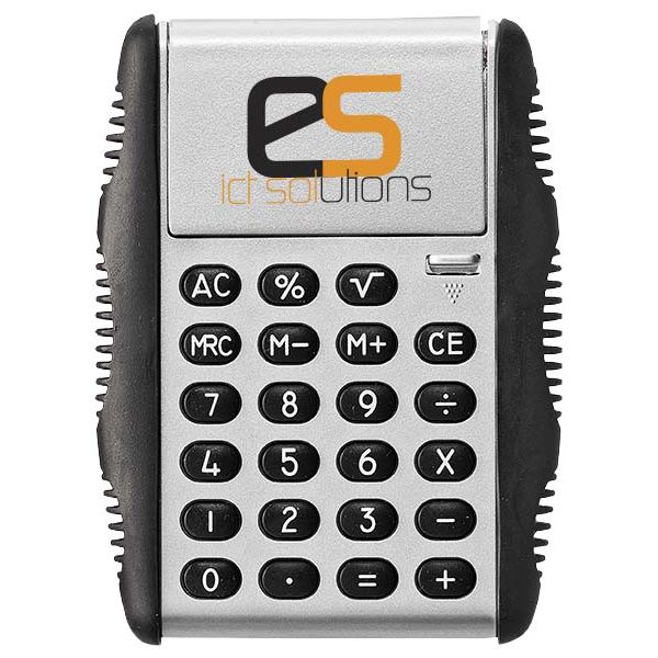 Magic calculator. 8 digit calculator with hydraulic opening system functioning as back stand. Battery included. Plastic.