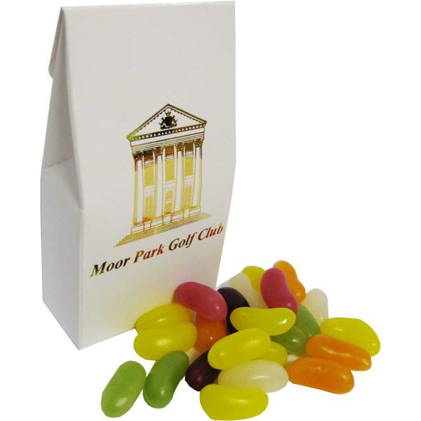 Digitally printed full colour satchel style box containing wrapped Fudge. Other fillings are available on request - please enquire.