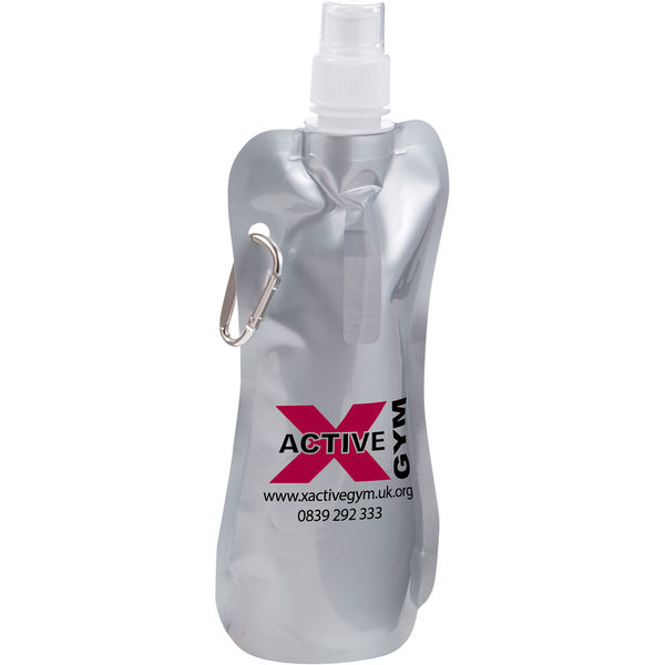 400ml resusable plastic roll up sports bottle. Features include a flip-top lid and window which allows you to check the liquid level. Includes matchng coloured carabiner. Conforms to articles in contact with food testing, BPA Free