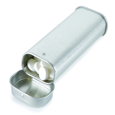 Tall mint tin containing approx. 86 mints per tin. Ingredients sticker and seal included.