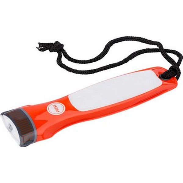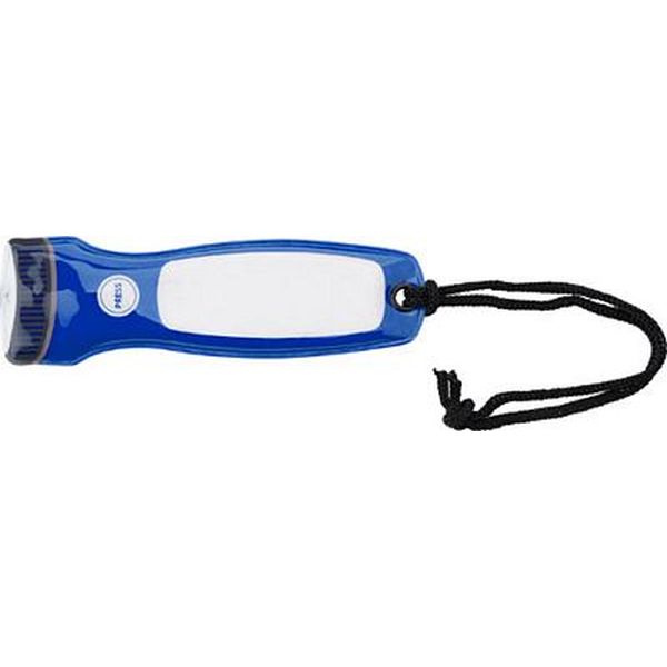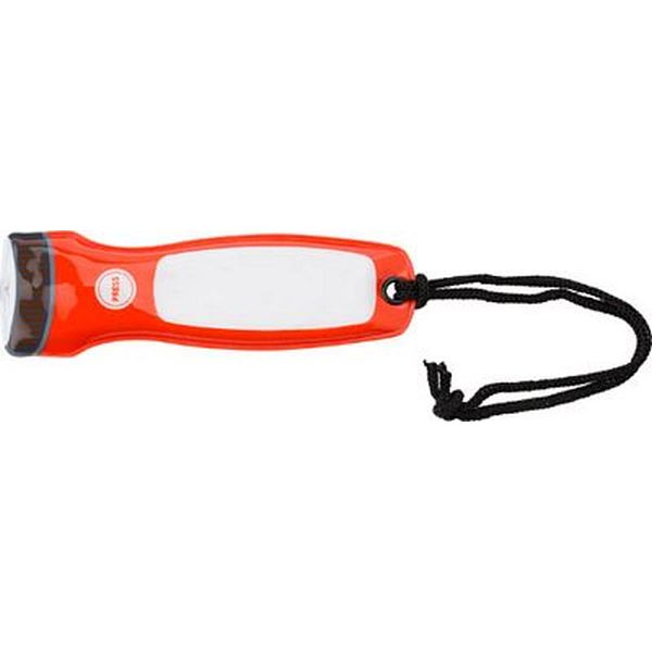 PVC extra thin pocket torch with one LED light, a nylon wrist cord and a magnetic back.