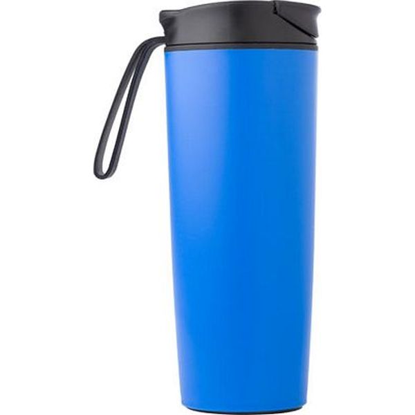 450ml Thermos flask, leak proof with coloured plastic exterior and interior and at the base a clever suction cup for stability on uneven surfaces. Includes a small silicon carry strap.