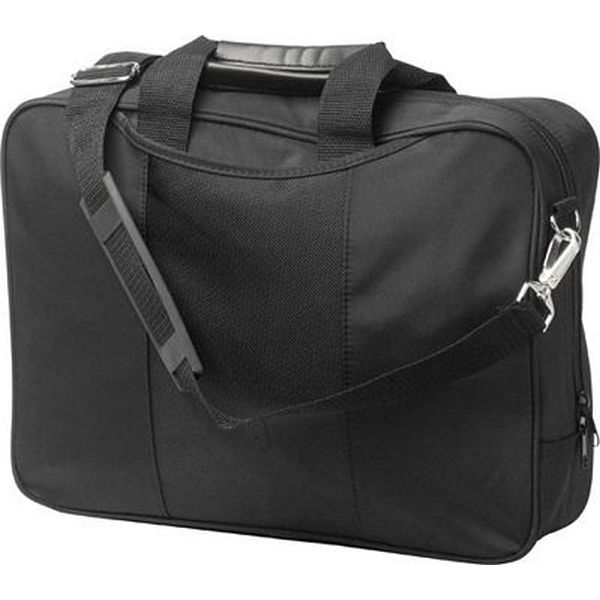 Business bag for up to 15" laptops in a 1680d microfibre material with one outside zipped pocket, two internal pockets and an adjustable shoulder strap.