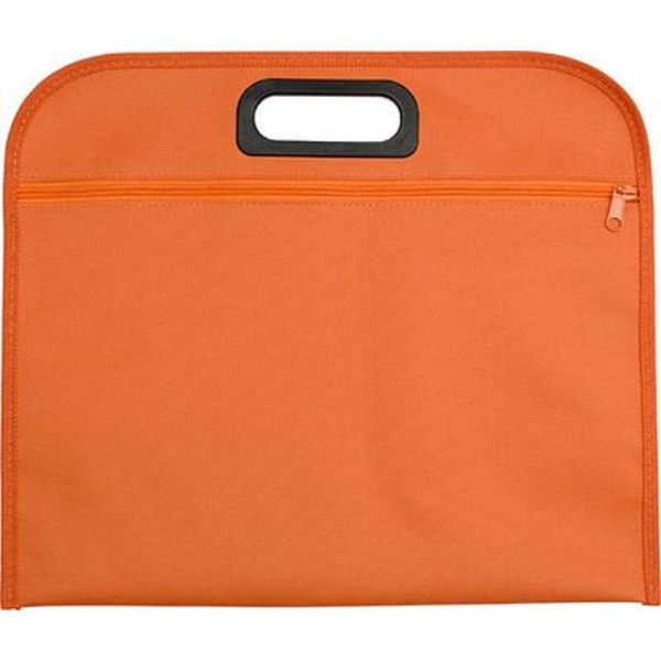 Polyester 600D conference bag with integrated black plastic handle and matching coloured zip.