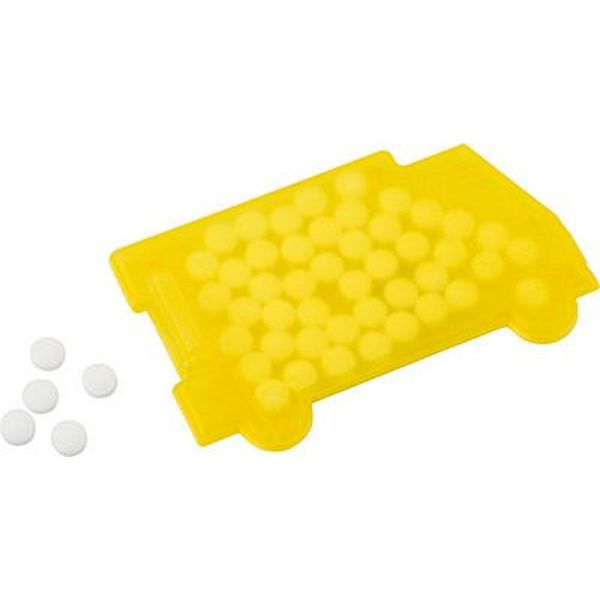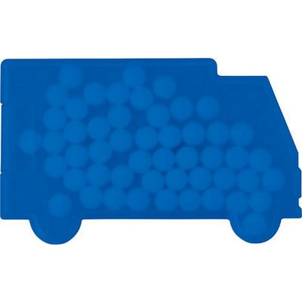 Van shaped mint card with approximately 5.5 grams of sugar free mints.